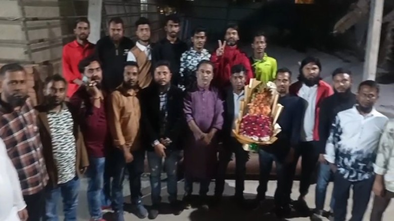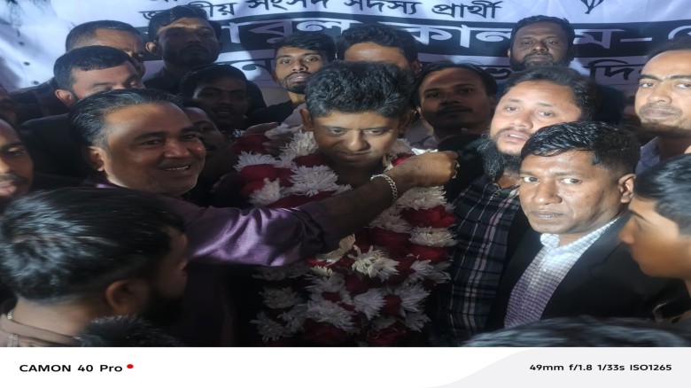 ৫ আসনের, সংসদ, সদস্যর সুযোগ্য পুত্র, আবুল কাওসার আশাকে, ফুল দিয়ে বরণ করে নেন।
