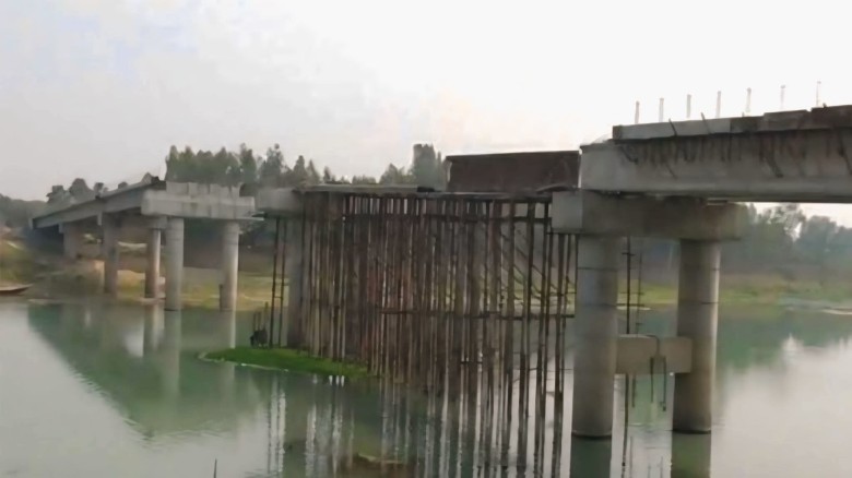 নওগাঁয় আত্রাই নদীর ওপর এলজিইডির নির্মানাধীণ সেতুর কাজ অর্থ সংকটে মাঝপথে আটকে।