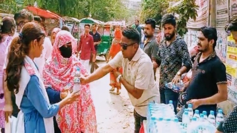 ‎সাভারে পরীক্ষার্থী ও অভিভাবকদের কলম, পানি বিতরণ, ছাত্রদল নেতারদা
