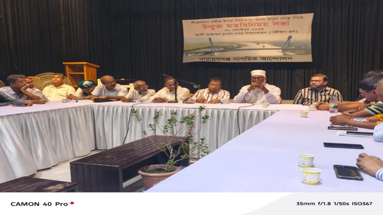 শীতলক্ষা নদীর উপর নির্মিতব্য কদম রসুল সেতু নিয়ে উন্মুক্ত মত বিনিময় সভা, রফিউর রাব্বি, নারায়ণগঞ্জ নাগরিক আন্দোলনের আহবায়, এর সভাপতিত্বে, উন্মুক্ত মত বিনিময় সভা, আলী আহম্মদ চুনকা পাঠাগার নারায়ণগঞ্জে ২০ সেপ্টেম্বর ২০২৫, বিকাল ৫ ঘটিকার সময়, ...